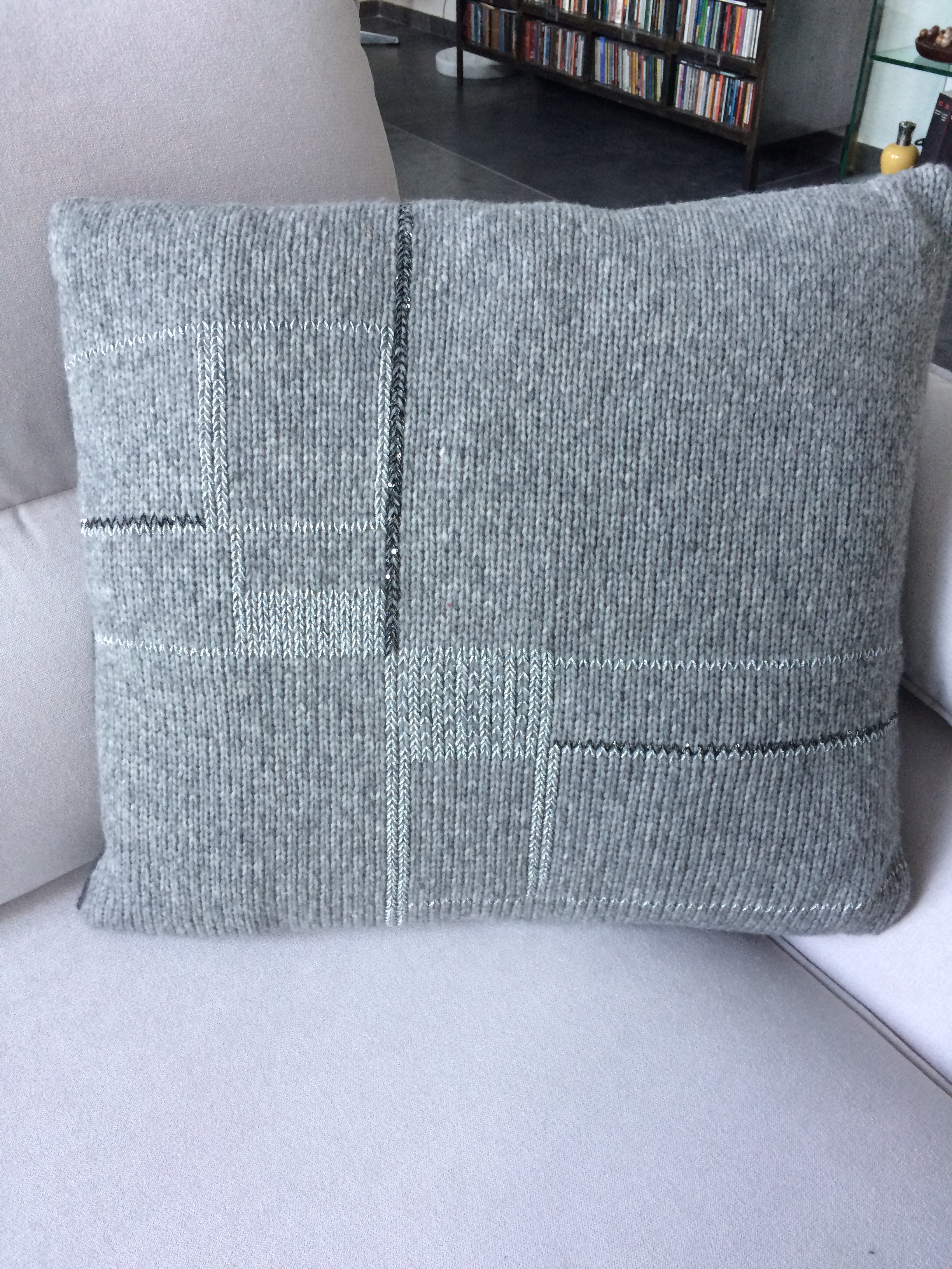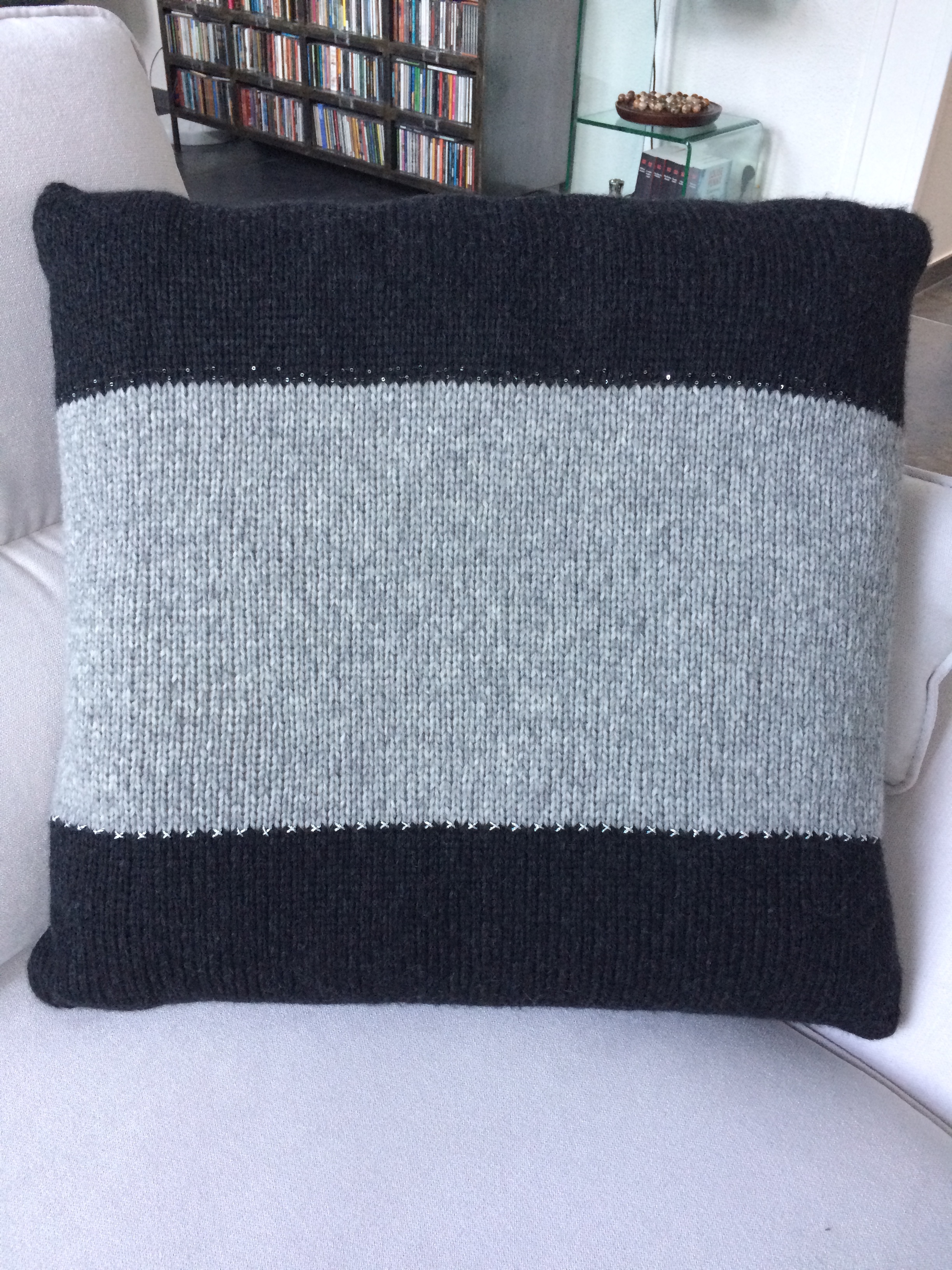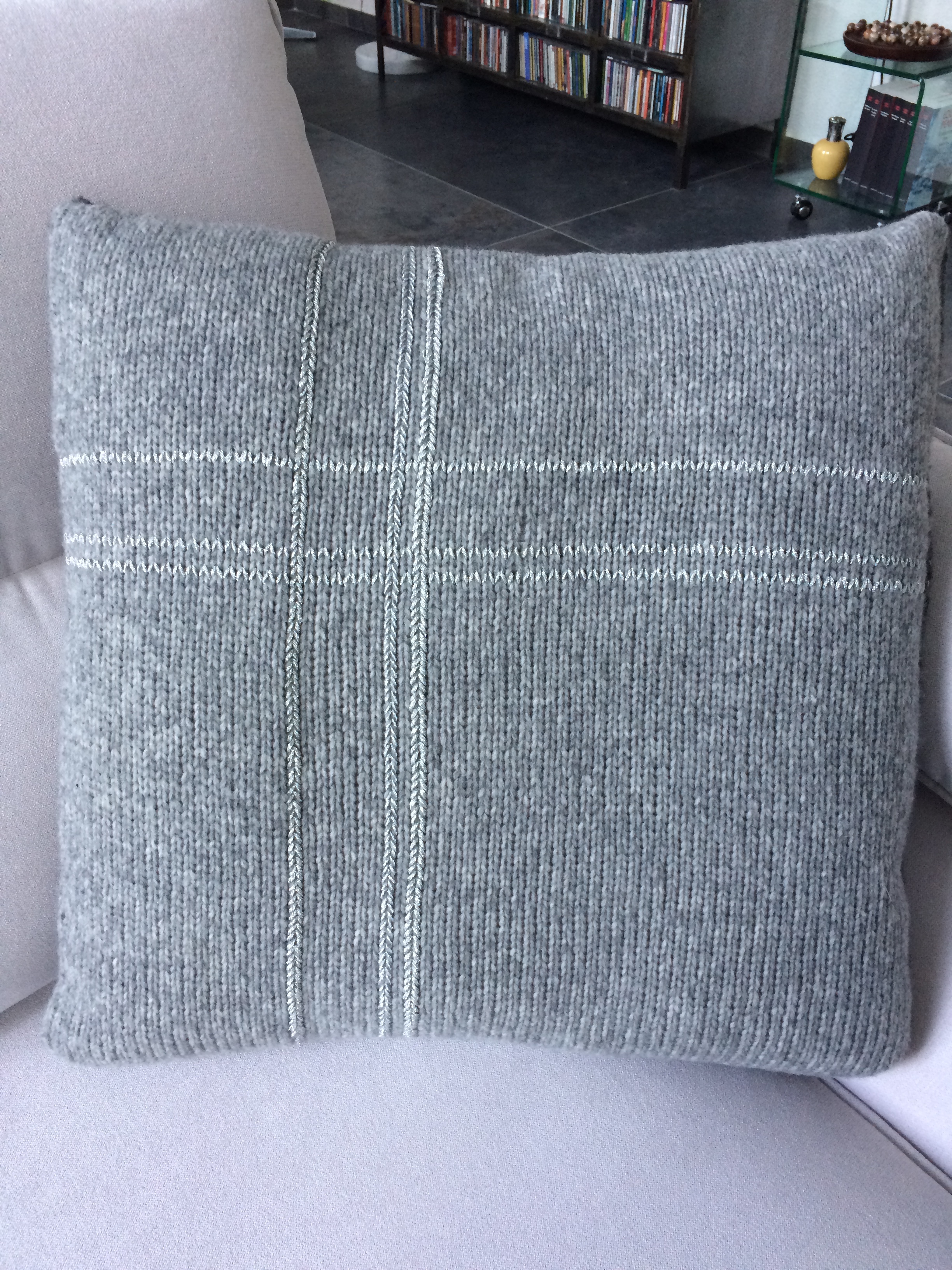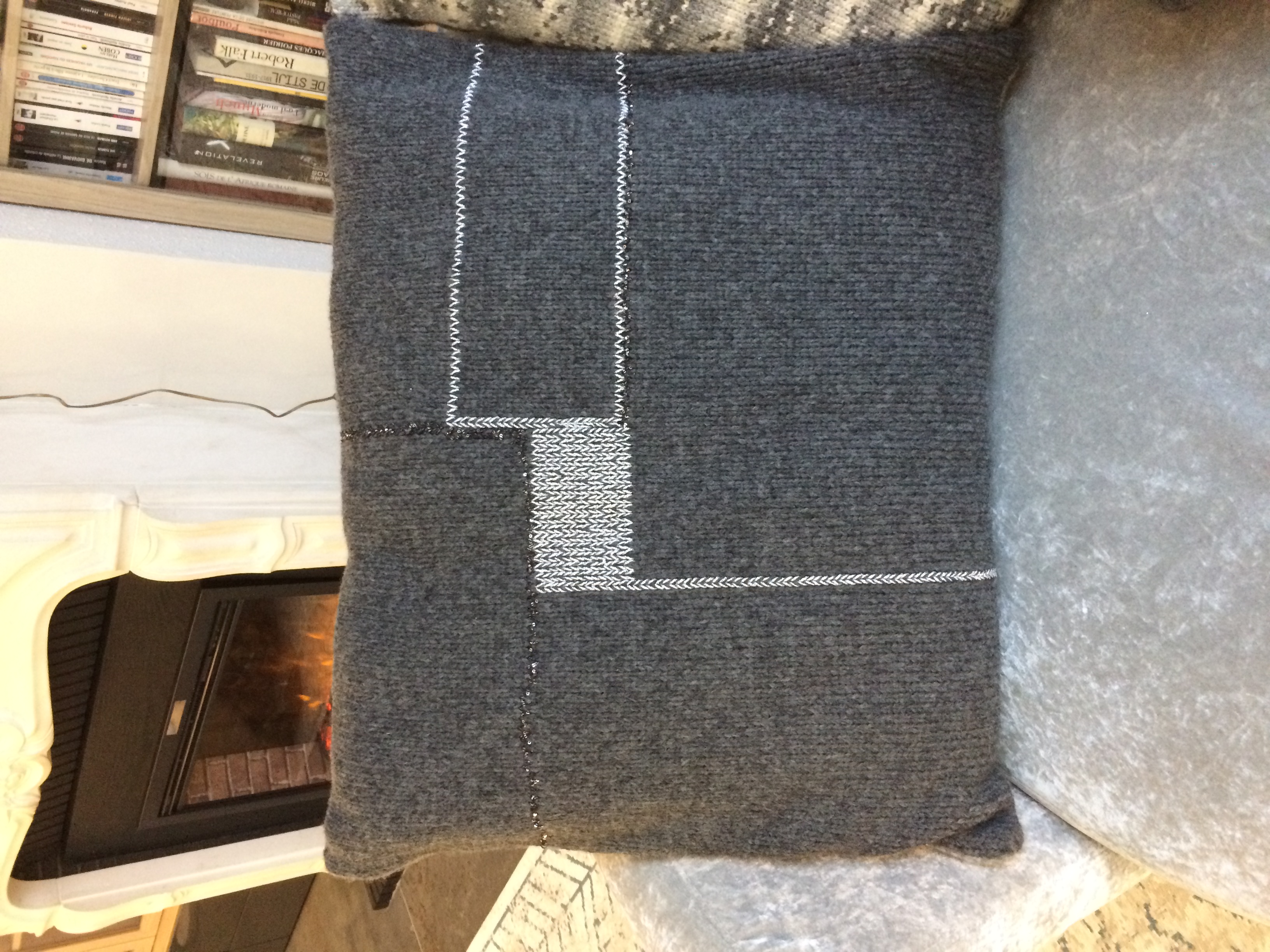 Coussin tricoté brodé 2 couleurs 55x55cm