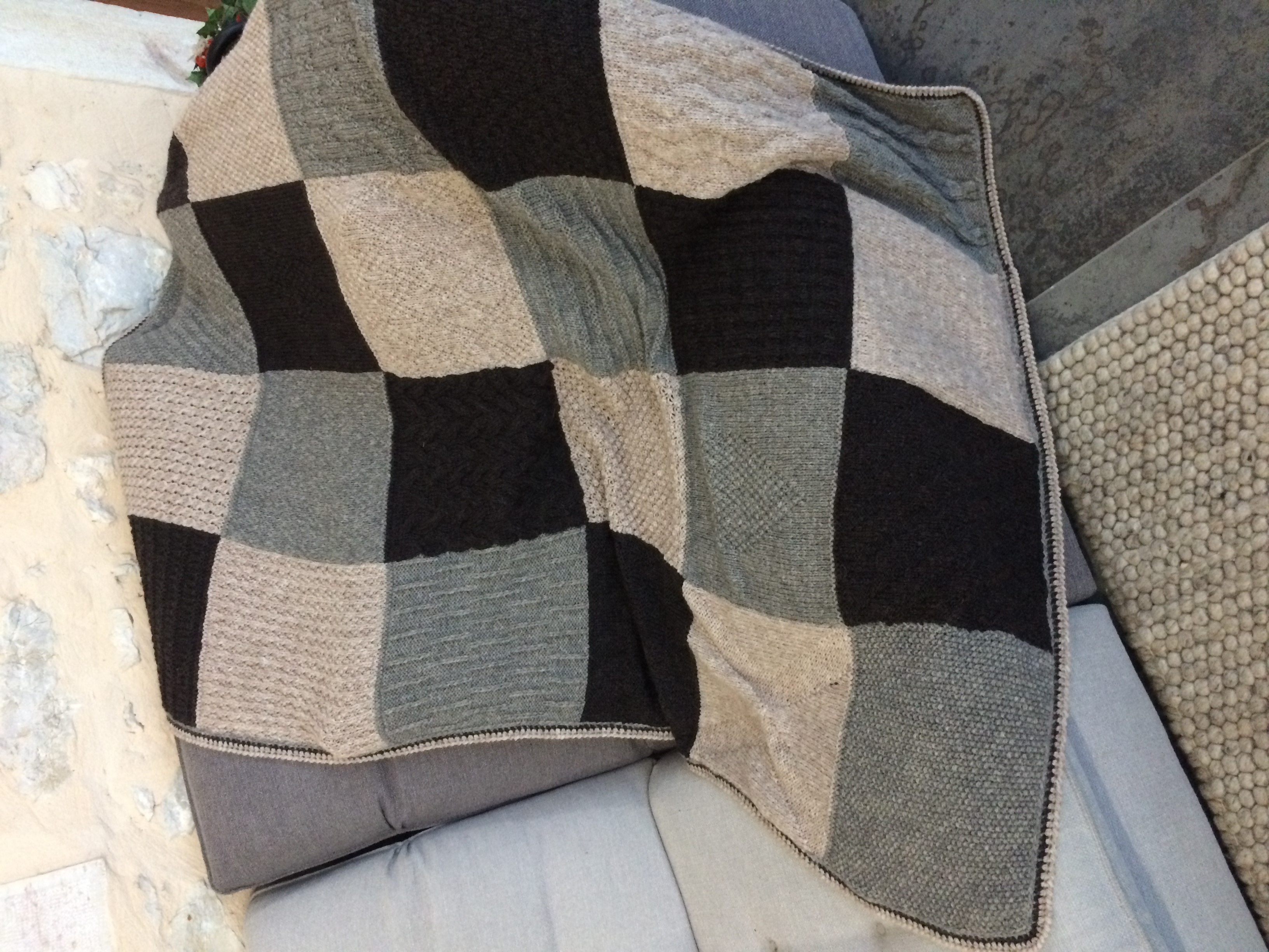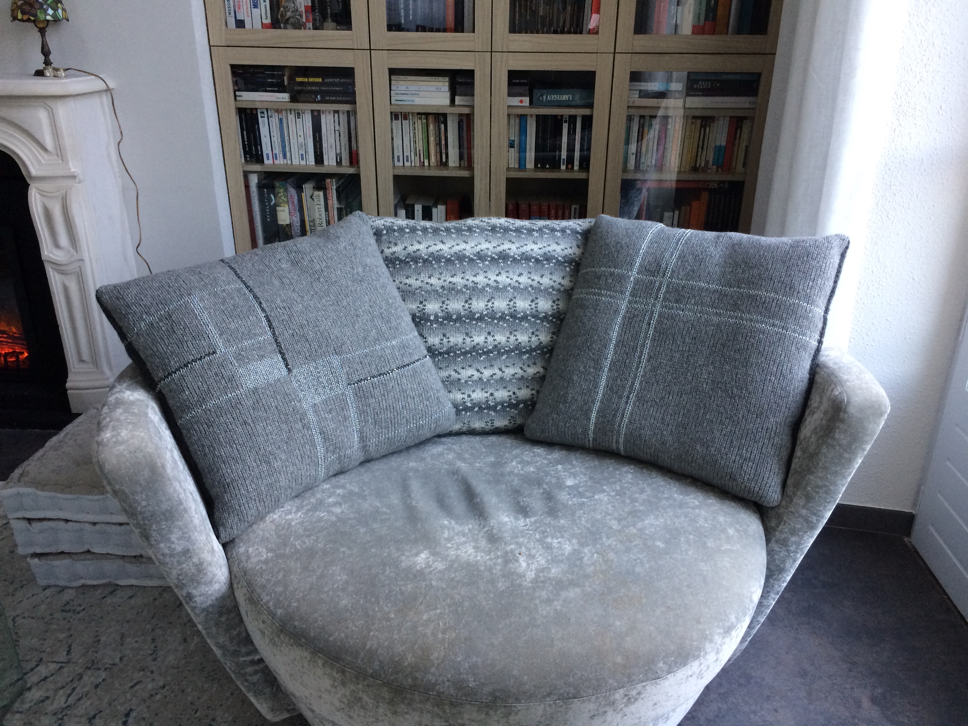 Coussin tricoté brodé 3 couleurs 55x55cm
