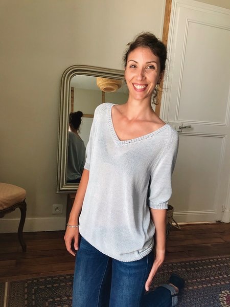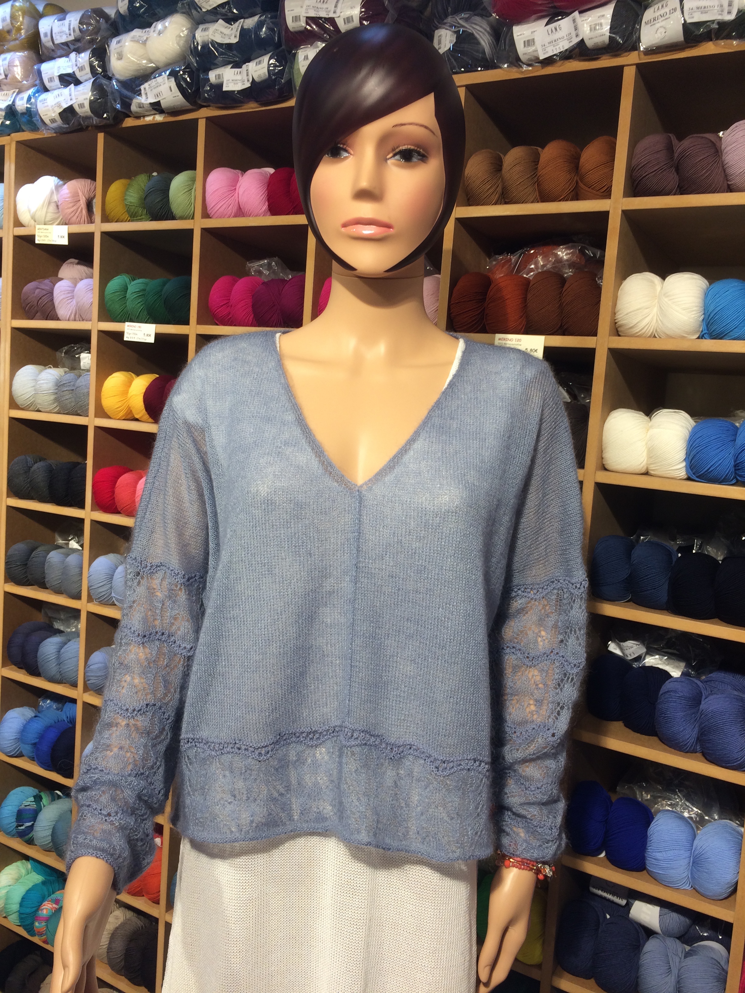 Pull AZUR LaceEtole Mosaïque Création TRICOTHE Lyon